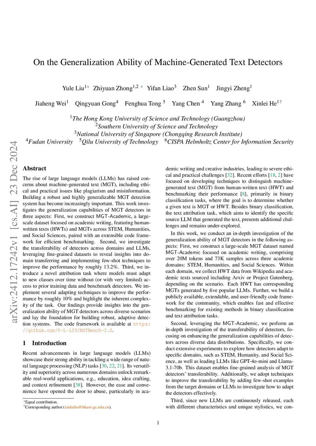 The rising popularity of large language models (LLMs) has raised concerns about machine-generated text (MGT), particularly in academic settings, where issues like plagiarism and misinformation are prevalent. As a result, developing a highly generalizable and adaptable MGT detection system has become an urgent priority. Given that LLMs are most commonly misused in academic writing, this work investigates the generalization and adaptation capabilities of MGT detectors in three key aspects specific to academic writing: First, we construct MGT-Acedemic, a large-scale dataset comprising over 336M tokens and 749K samples. MGT-Acedemic focuses on academic writing, featuring human-written texts (HWTs) and MGTs across STEM, Humanities, and Social Sciences, paired with an extensible code framework for efficient benchmarking. Second, we benchmark the performance of various detectors for binary classification and attribution tasks in both in-domain and cross-domain settings. This benchmark reveals the often-overlooked challenges of attribution tasks. Third, we introduce a novel attribution task where models have to adapt to new classes over time without (or with very limited) access to prior training data in both few-shot and many-shot scenarios. We implement eight different adapting techniques to improve the performance and highlight the inherent complexity of the task. Our findings provide insights into the generalization and adaptation ability of MGT detectors across diverse scenarios and lay the foundation for building robust, adaptive detection systems. The code framework is available atthis https URL.