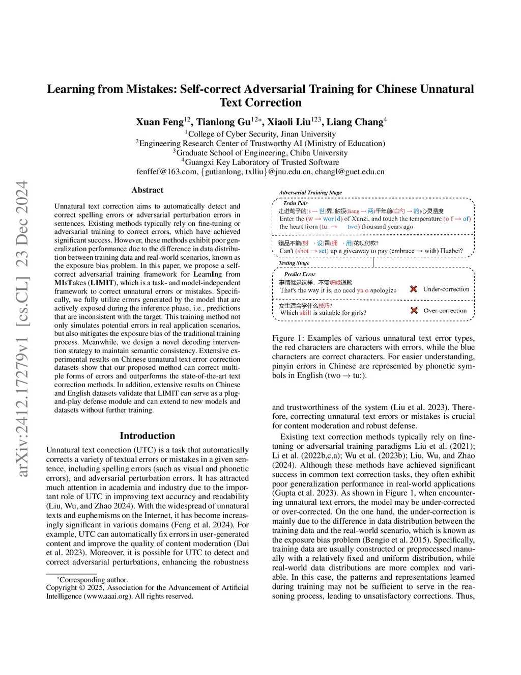 Learning from Mistakes: Self-correct Adversarial Training for Chinese