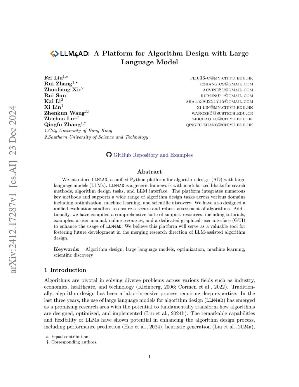 LLM4AD: A Platform for Algorithm Design with Large Language Model