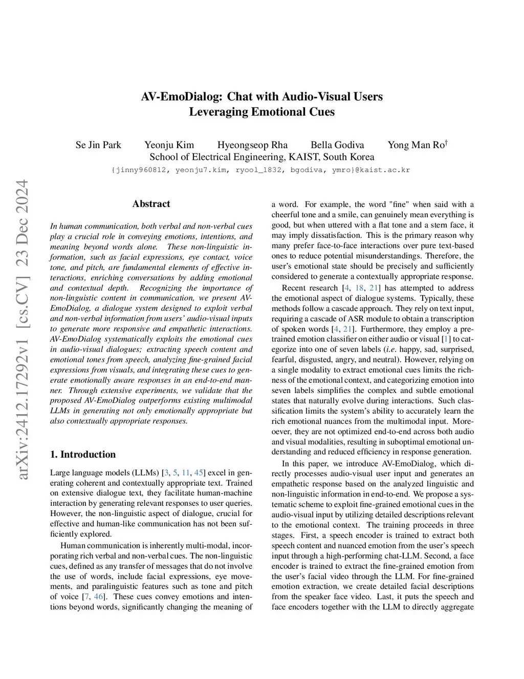 AV-EmoDialog: Chat with Audio-Visual Users Leveraging Emotional Cues
