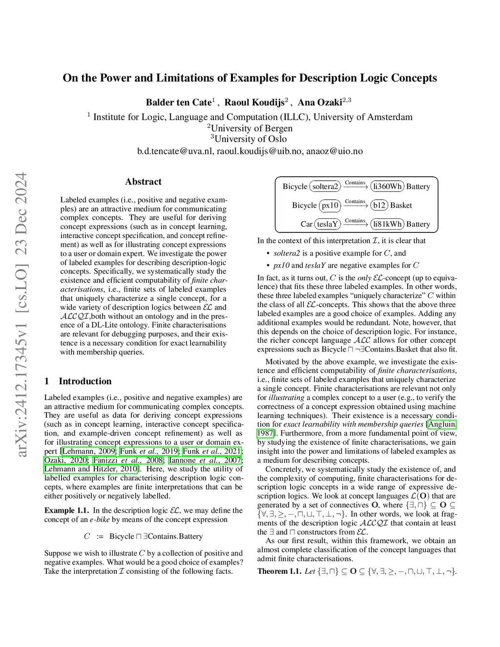 On the Power and Limitations of Examples for Description Logic Concepts