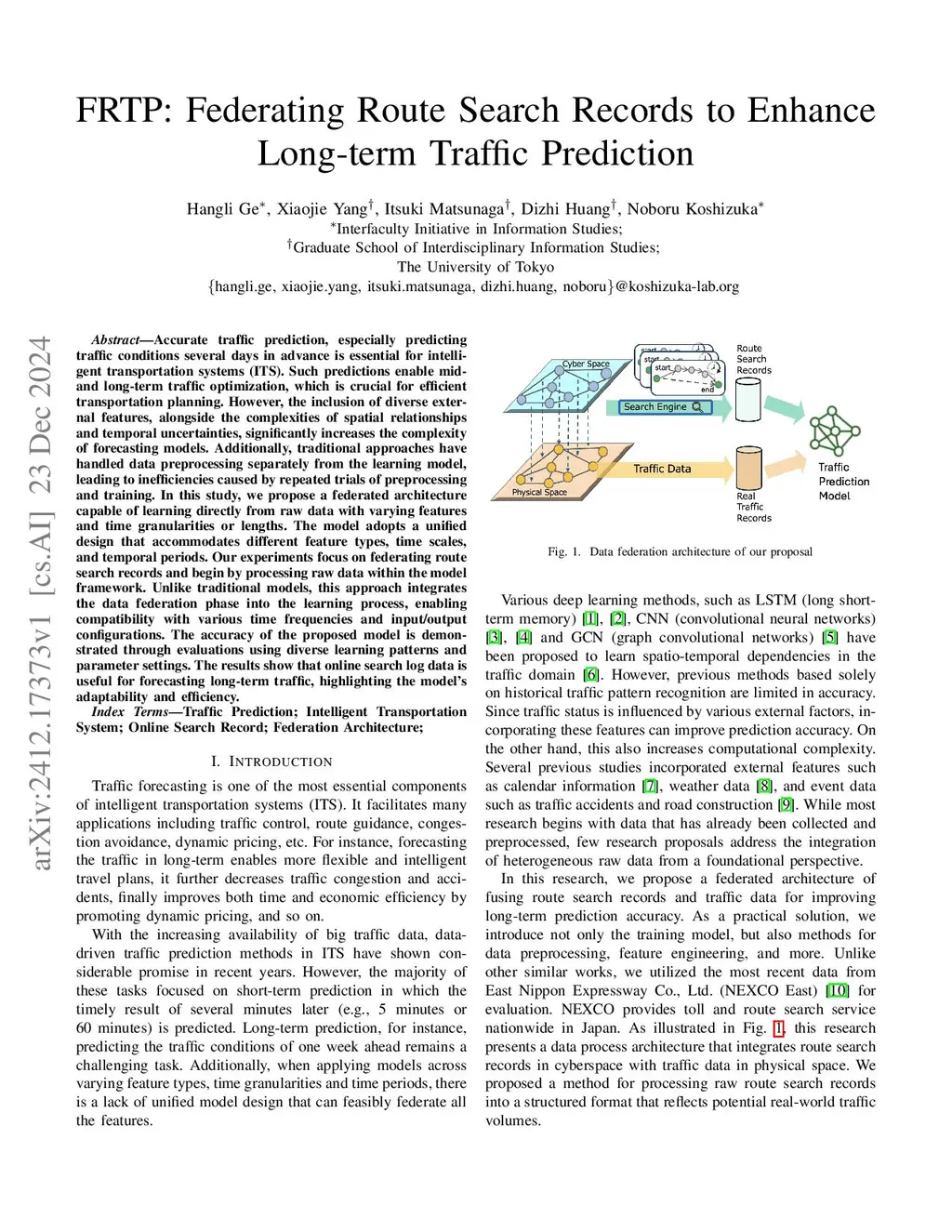 Accurate traffic prediction, especially predicting traffic conditions several days in advance is essential for intelligent transportation systems (ITS). Such predictions enable mid- and long-term traffic optimization, which is crucial for efficient transportation planning. However, the inclusion of diverse external features, alongside the complexities of spatial relationships and temporal uncertainties, significantly increases the complexity of forecasting models. Additionally, traditional approaches have handled data preprocessing separately from the learning model, leading to inefficiencies caused by repeated trials of preprocessing and training. In this study, we propose a federated architecture capable of learning directly from raw data with varying features and time granularities or lengths. The model adopts a unified design that accommodates different feature types, time scales, and temporal periods. Our experiments focus on federating route search records and begin by processing raw data within the model framework. Unlike traditional models, this approach integrates the data federation phase into the learning process, enabling compatibility with various time frequencies and input/output configurations. The accuracy of the proposed model is demonstrated through evaluations using diverse learning patterns and parameter settings. The results show that online search log data is useful for forecasting long-term traffic, highlighting the model's adaptability and efficiency.