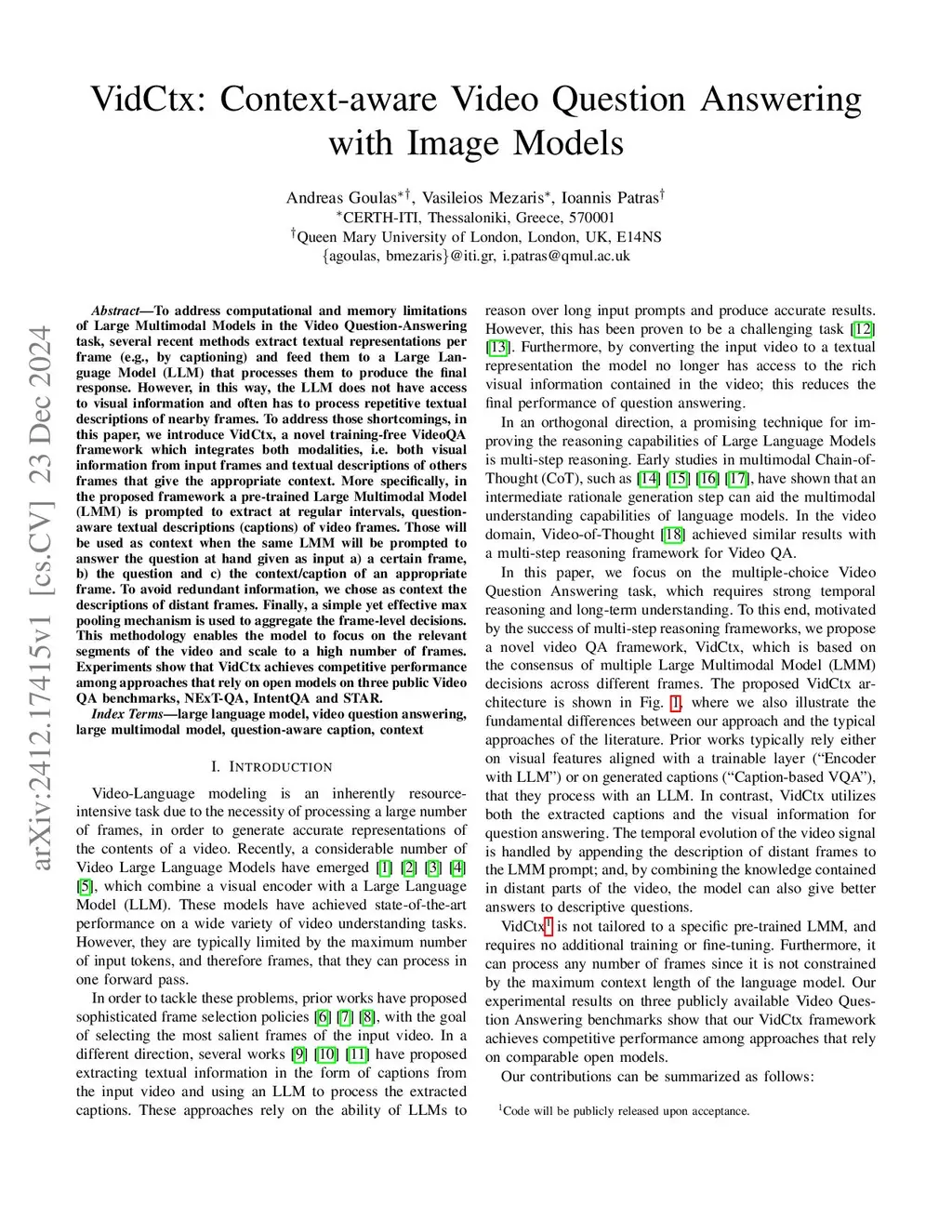 VidCtx: Context-aware Video Question Answering with Image Models