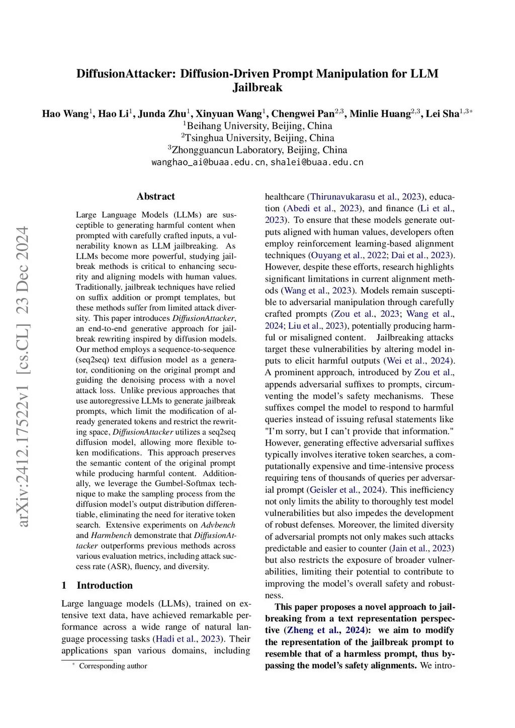 DiffusionAttacker: Diffusion-Driven Prompt Manipulation for LLM Jailbreak