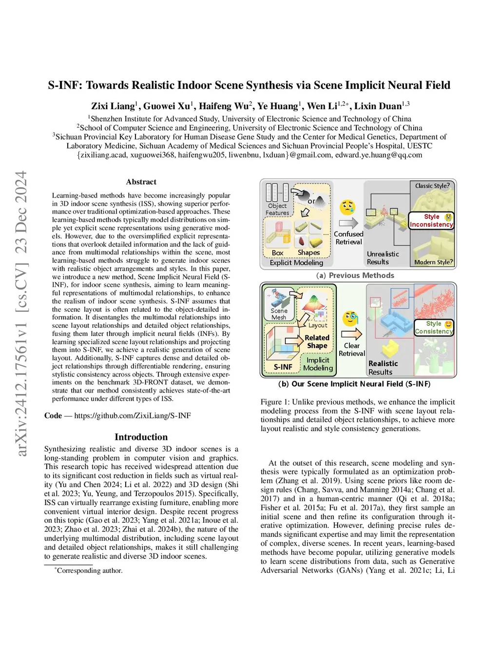 S-INF: Towards Realistic Indoor Scene Synthesis via Scene Implicit Neural Field