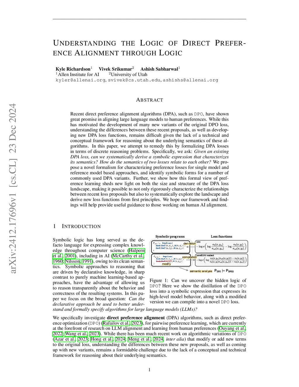 Understanding the Logic of Direct Preference Alignment through Logic