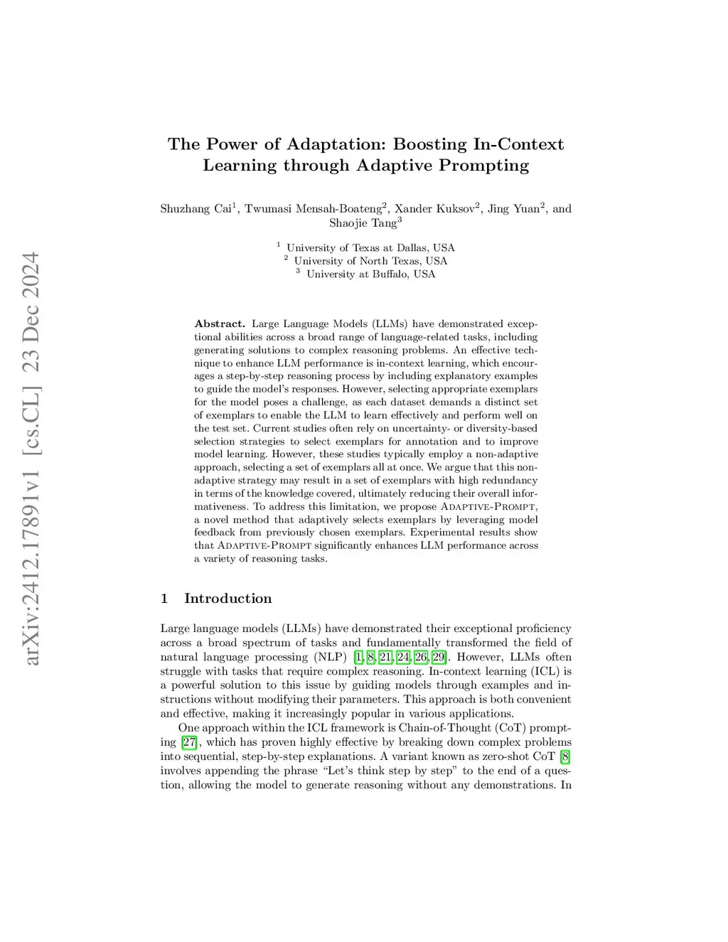 The Power of Adaptation: Boosting In-Context Learning through Adaptive