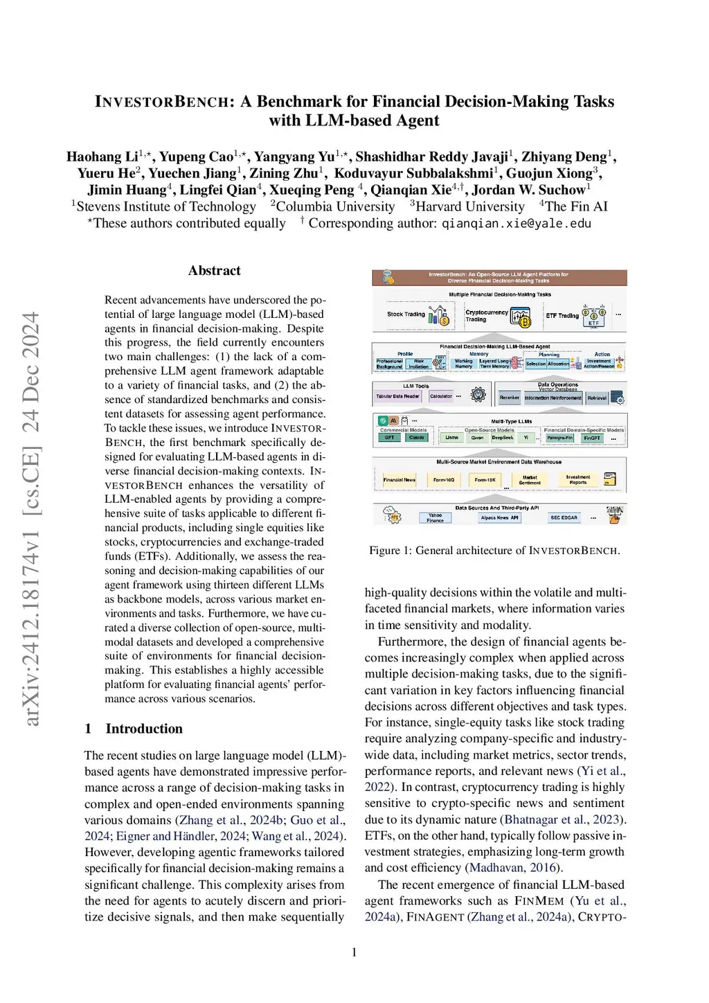 INVESTORBENCH: A Benchmark for Financial Decision-Making Tasks with
