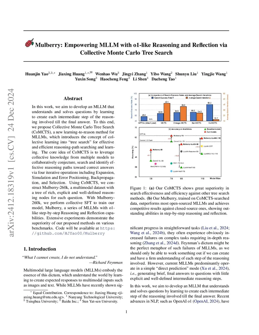 Mulberry: Empowering MLLM with o1-like Reasoning and Reflection via Collective Monte Carlo Tree Search