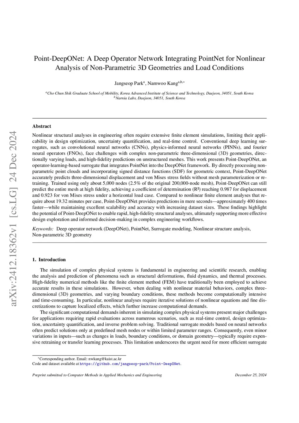 Nonlinear Analysis of Non-Parametric 3D Geometries and Load Conditions