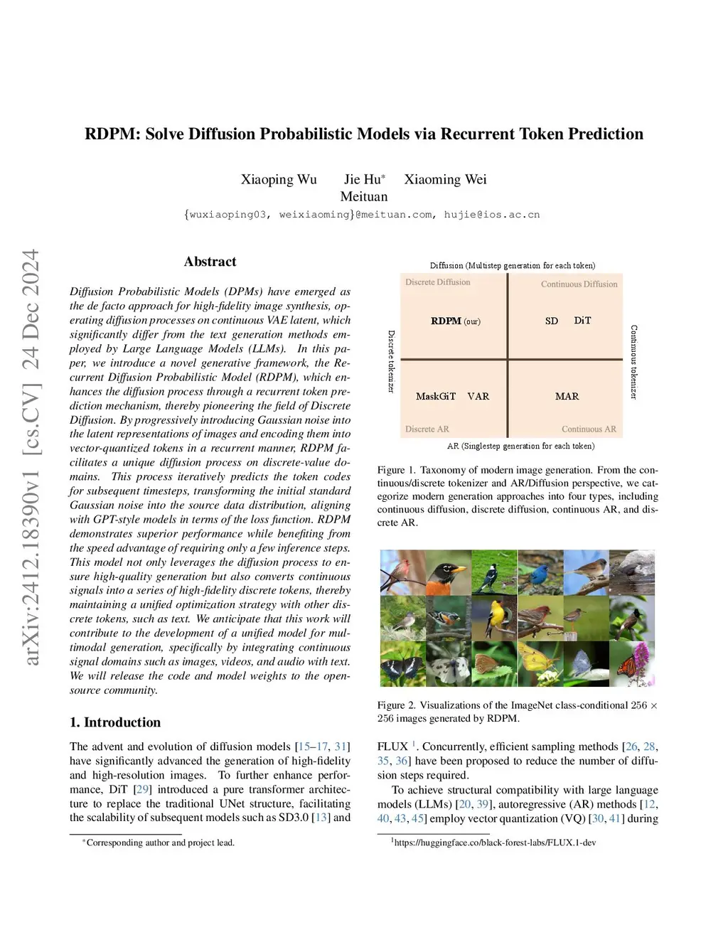 Diffusion Probabilistic Models (DPMs) have emerged as the de facto approach for high-fidelity image synthesis, operating diffusion processes on continuous VAE latent, which significantly differ from the text generation methods employed by Large Language Models (LLMs). In this paper, we introduce a novel generative framework, the Recurrent Diffusion Probabilistic Model (RDPM), which enhances the diffusion process through a recurrent token prediction mechanism, thereby pioneering the field of Discrete Diffusion. By progressively introducing Gaussian noise into the latent representations of images and encoding them into vector-quantized tokens in a recurrent manner, RDPM facilitates a unique diffusion process on discrete-value domains. This process iteratively predicts the token codes for subsequent timesteps, transforming the initial standard Gaussian noise into the source data distribution, aligning with GPT-style models in terms of the loss function. RDPM demonstrates superior performance while benefiting from the speed advantage of requiring only a few inference steps. This model not only leverages the diffusion process to ensure high-quality generation but also converts continuous signals into a series of high-fidelity discrete tokens, thereby maintaining a unified optimization strategy with other discrete tokens, such as text. We anticipate that this work will contribute to the development of a unified model for multimodal generation, specifically by integrating continuous signal domains such as images, videos, and audio with text. We will release the code and model weights to the open-source community.