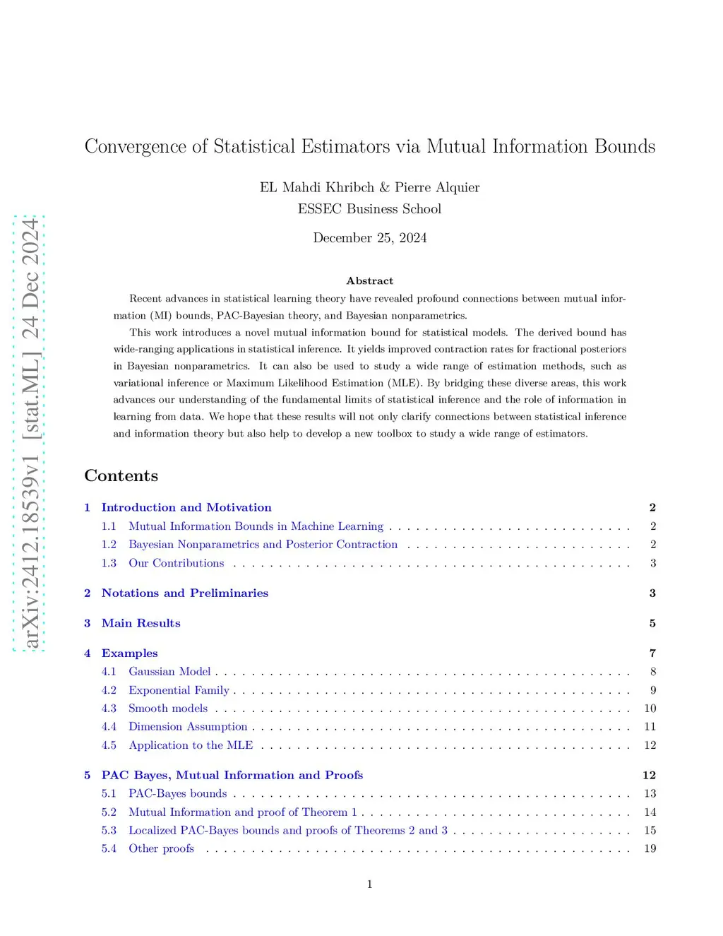 Recent advances in statistical learning theory have revealed profound connections between mutual information (MI) bounds, PAC-Bayesian theory, and Bayesian nonparametrics. This work introduces a novel mutual information bound for statistical models. The derived bound has wide-ranging applications in statistical inference. It yields improved contraction rates for fractional posteriors in Bayesian nonparametrics. It can also be used to study a wide range of estimation methods, such as variational inference or Maximum Likelihood Estimation (MLE). By bridging these diverse areas, this work advances our understanding of the fundamental limits of statistical inference and the role of information in learning from data. We hope that these results will not only clarify connections between statistical inference and information theory but also help to develop a new toolbox to study a wide range of estimators.