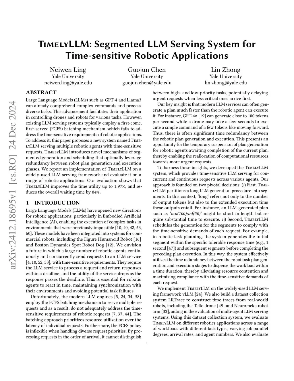 TimelyLLM: Segmented LLM Serving System for Time-sensitive Robotic