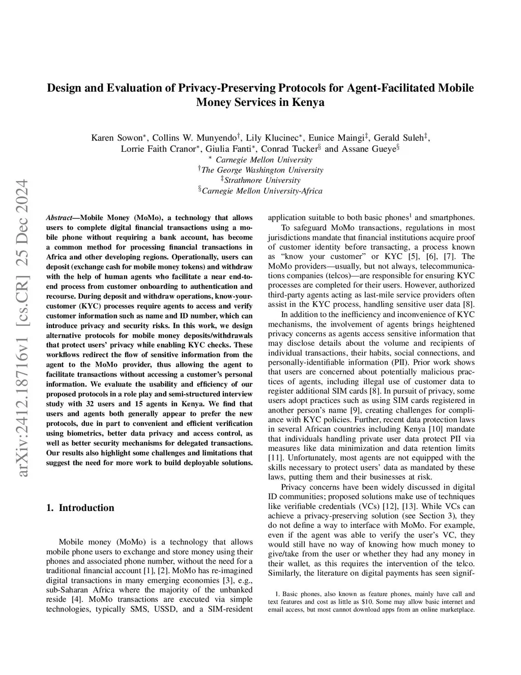 Design and Evaluation of Privacy-Preserving Protocols for Agent-Facilitated Mobile Money Services in Kenya