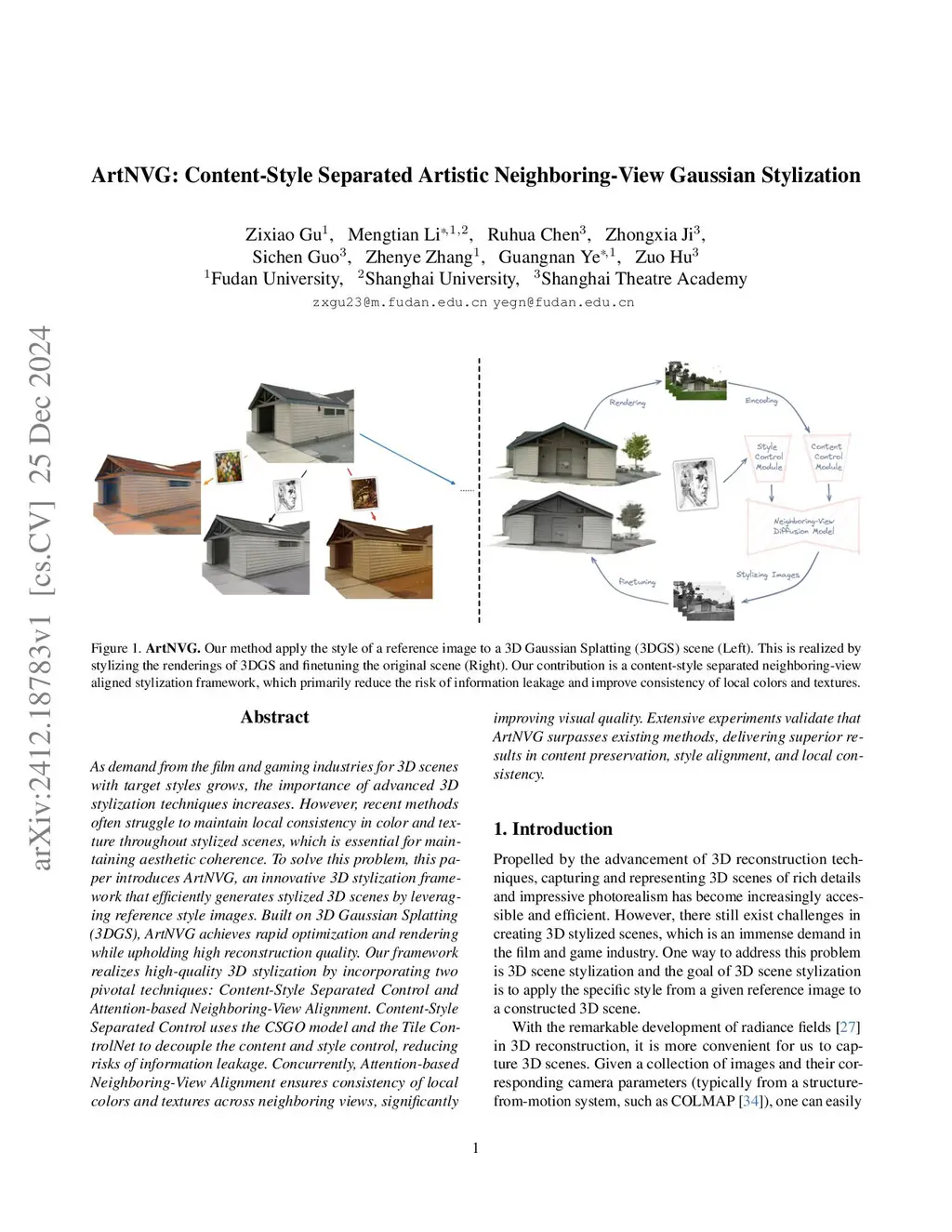 ArtNVG: Content-Style Separated Artistic Neighboring-View Gaussian Stylization