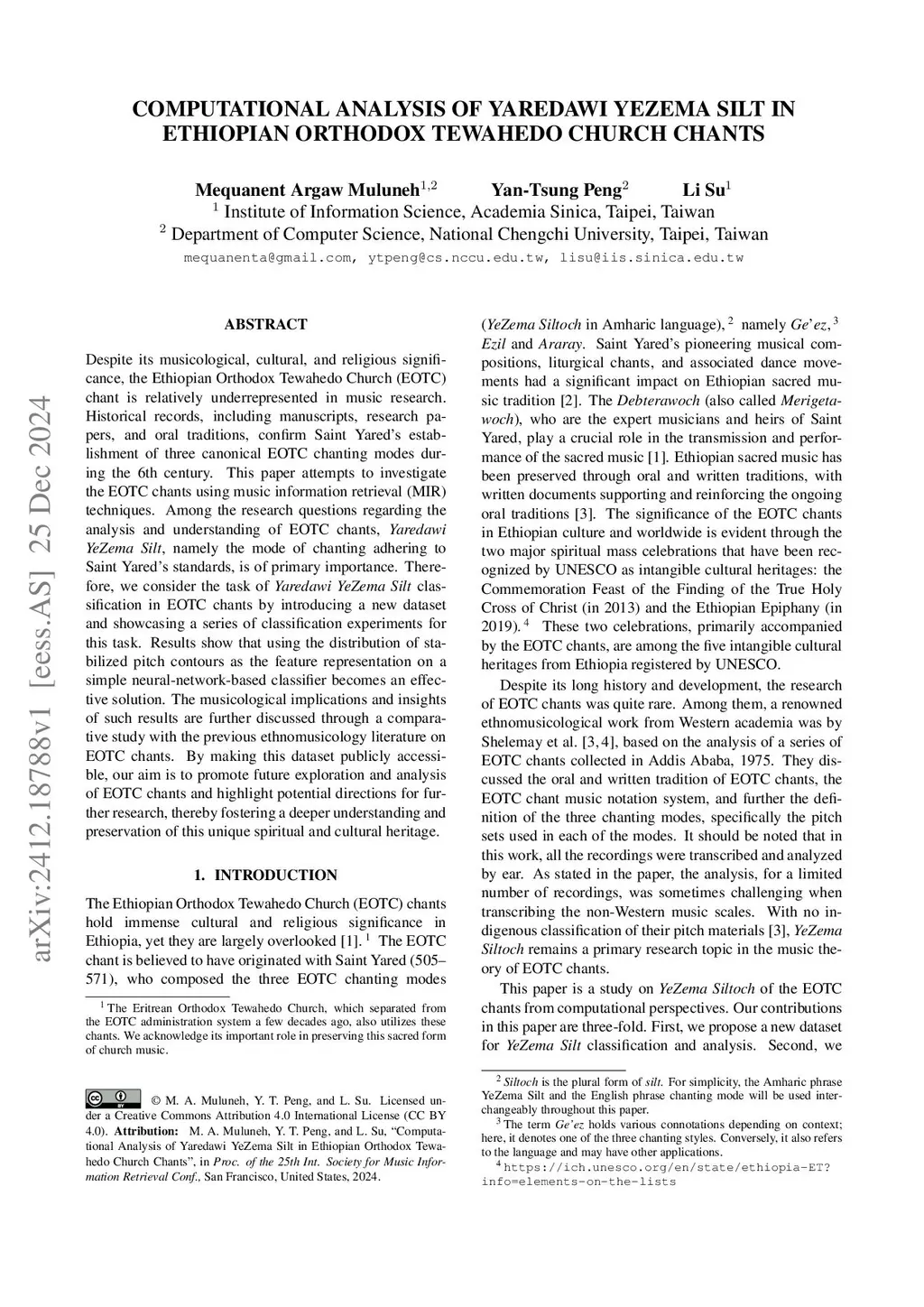 Computational Analysis of Yaredawi YeZema Silt in Ethiopian Orthodox