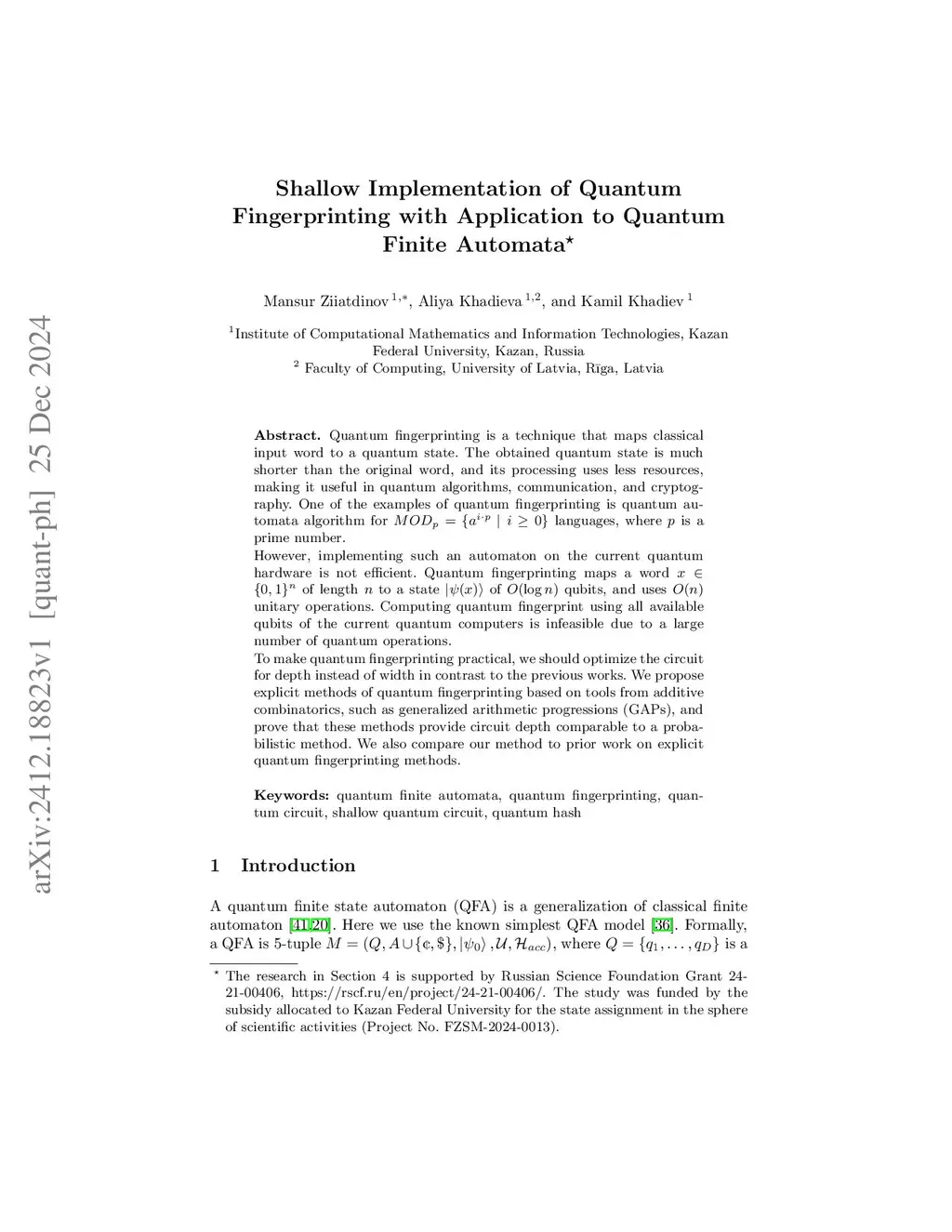 Quantum Finite Automata