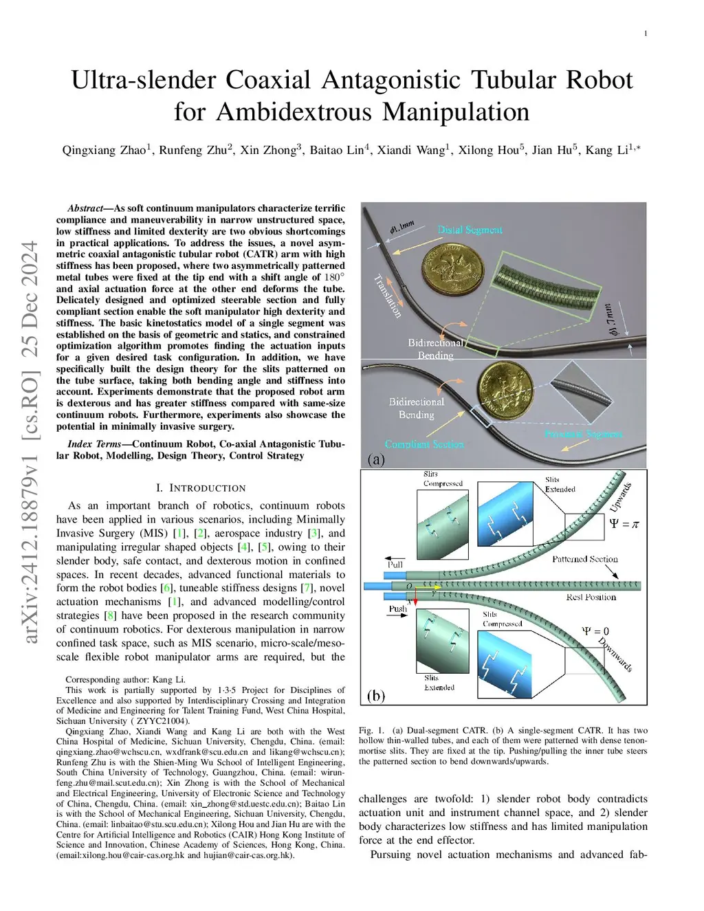 Ultra-slender Coaxial Antagonistic Tubular Robot for Ambidextrous