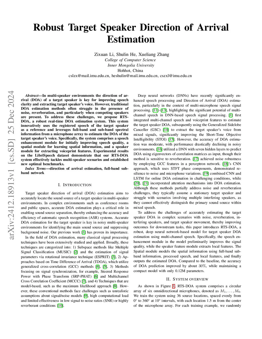 In multi-speaker environments the direction of arrival (DOA) of a target speaker is key for improving speech clarity and extracting target speaker's voice. However, traditional DOA estimation methods often struggle in the presence of noise, reverberation, and particularly when competing speakers are present. To address these challenges, we propose RTS-DOA, a robust real-time DOA estimation system. This system innovatively uses the registered speech of the target speaker as a reference and leverages full-band and sub-band spectral information from a microphone array to estimate the DOA of the target speaker's voice. Specifically, the system comprises a speech enhancement module for initially improving speech quality, a spatial module for learning spatial information, and a speaker module for extracting voiceprint features. Experimental results on the LibriSpeech dataset demonstrate that our RTS-DOA system effectively tackles multi-speaker scenarios and established new optimal benchmarks.
