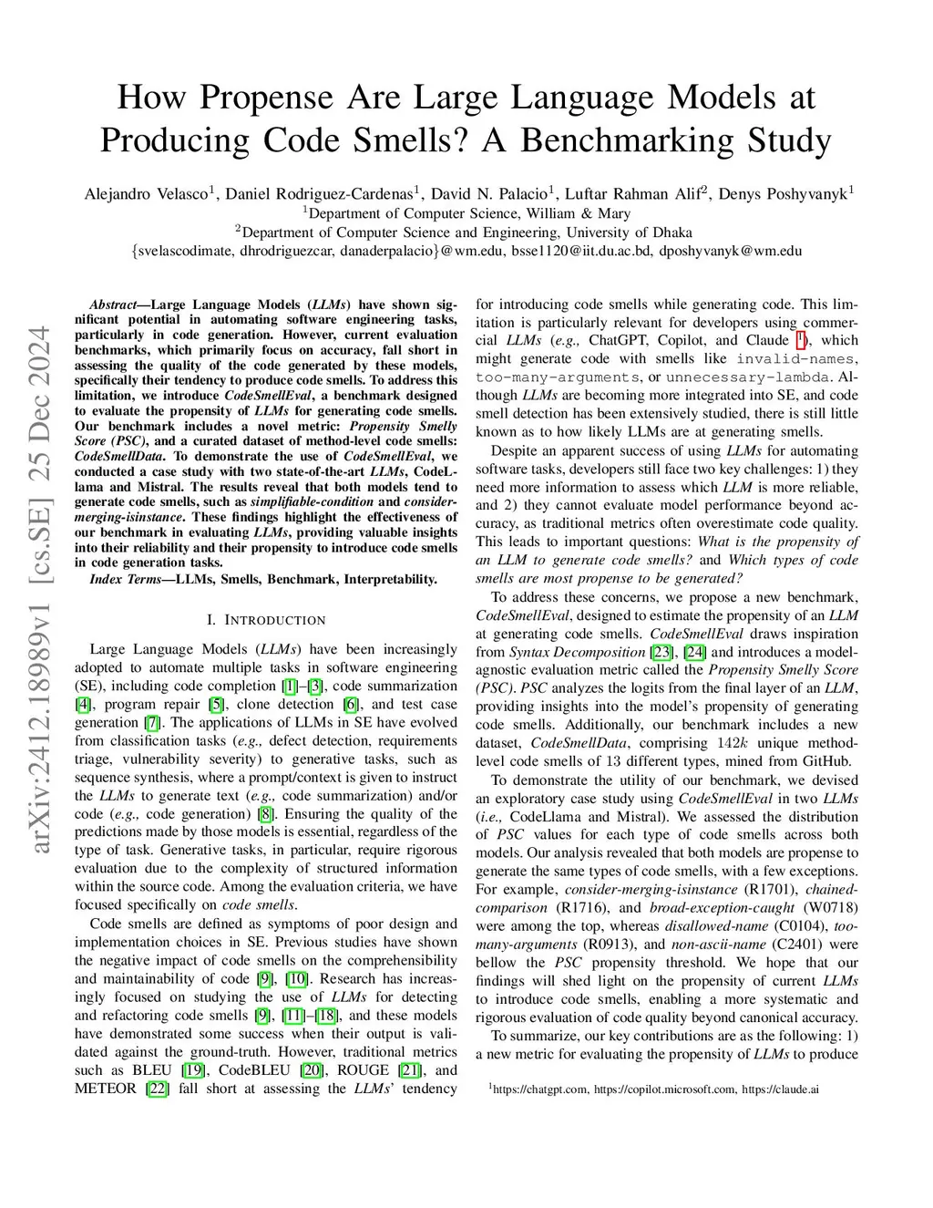 How Propense Are Large Language Models at Producing Code Smells? A Benchmarking Study