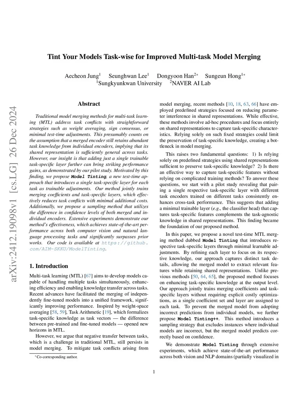 Model merging offers an efficient alternative to multi-task learning by combining independently fine-tuned models, but most prior approaches focus mainly on avoiding task interference. We argue instead that the real potential of merging lies in achieving synergy, where tasks enhance one another. Our intuition comes from a pilot study showing that when a classifier trained on one task is paired with the encoder of another, the resulting cross-task performance strongly predicts merge quality. Moreover, adapting even a single task-specific layer can substantially improve this compatibility, suggesting a simple yet powerful lever for synergy. Building on this insight, we introduce SyMerge, a lightweight framework that jointly optimizes one task-specific layer and merging coefficients. To ensure stability without labels, SyMerge employs a robust self-labeling strategy guided by expert model predictions, avoiding the pitfalls of entropy-based adaptation. This minimalist yet principled design achieves state-of-the-art results across vision, dense prediction, and NLP benchmarks, while also producing adapted layers that transfer effectively to other merging methods. Our code is available atthis https URL