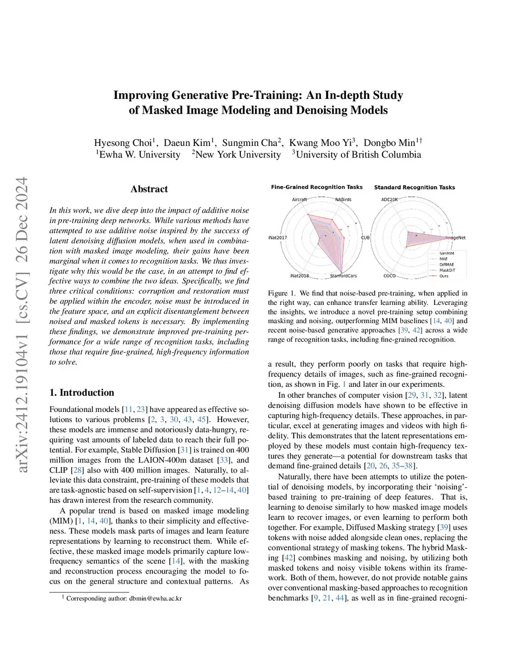 In this work, we dive deep into the impact of additive noise in pre-training deep networks. While various methods have attempted to use additive noise inspired by the success of latent denoising diffusion models, when used in combination with masked image modeling, their gains have been marginal when it comes to recognition tasks. We thus investigate why this would be the case, in an attempt to find effective ways to combine the two ideas. Specifically, we find three critical conditions: corruption and restoration must be applied within the encoder, noise must be introduced in the feature space, and an explicit disentanglement between noised and masked tokens is necessary. By implementing these findings, we demonstrate improved pre-training performance for a wide range of recognition tasks, including those that require fine-grained, high-frequency information to solve.