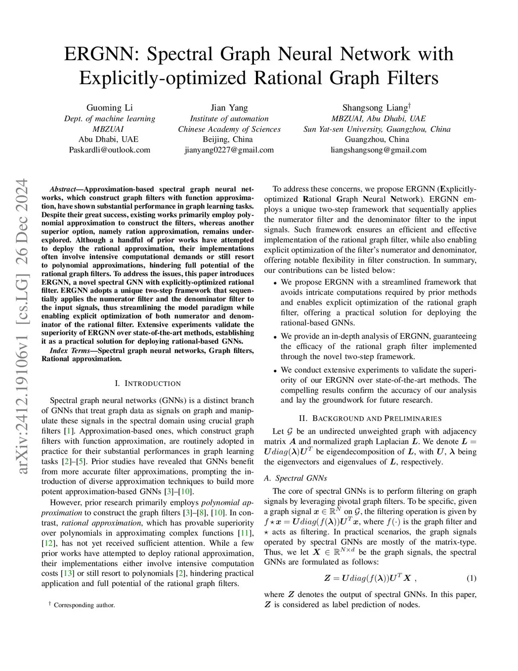ERGNN: Spectral Graph Neural Network With Explicitly-Optimized Rational Graph Filters