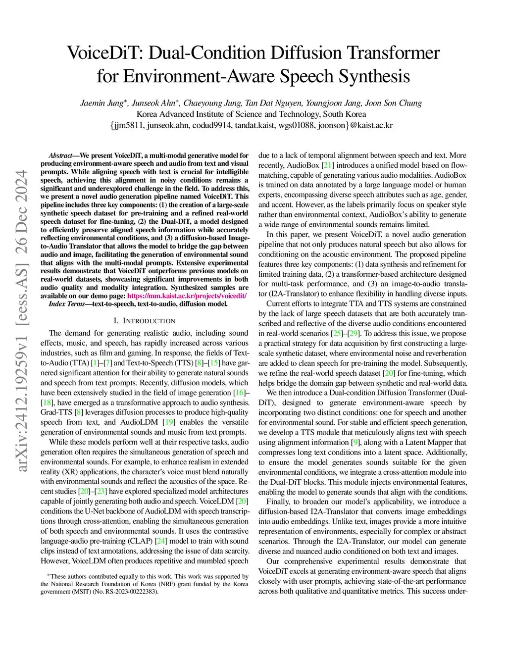 VoiceDiT: Dual-Condition Diffusion Transformer for Environment-Aware