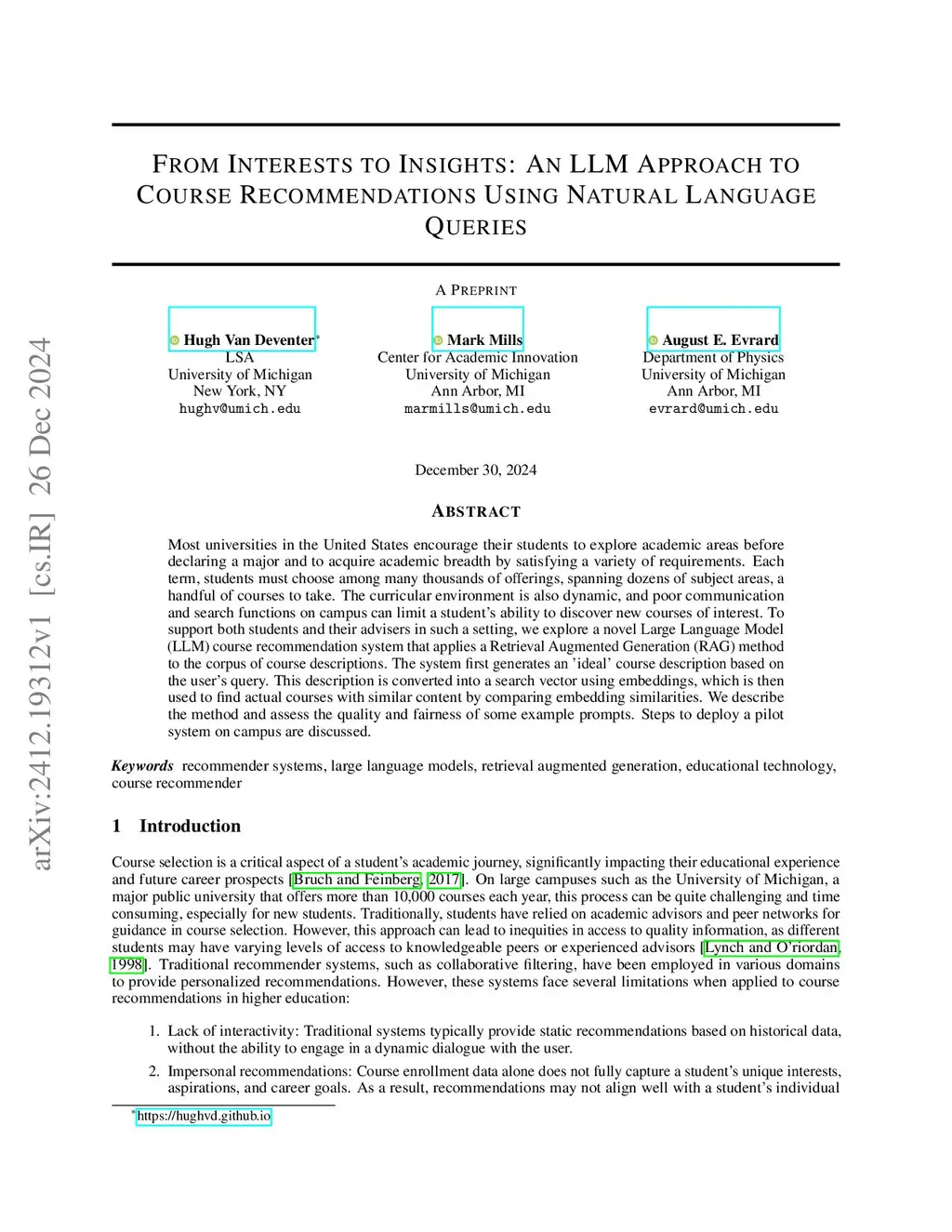 From Interests to Insights: An LLM Approach to Course Recommendations Using Natural Language Queries