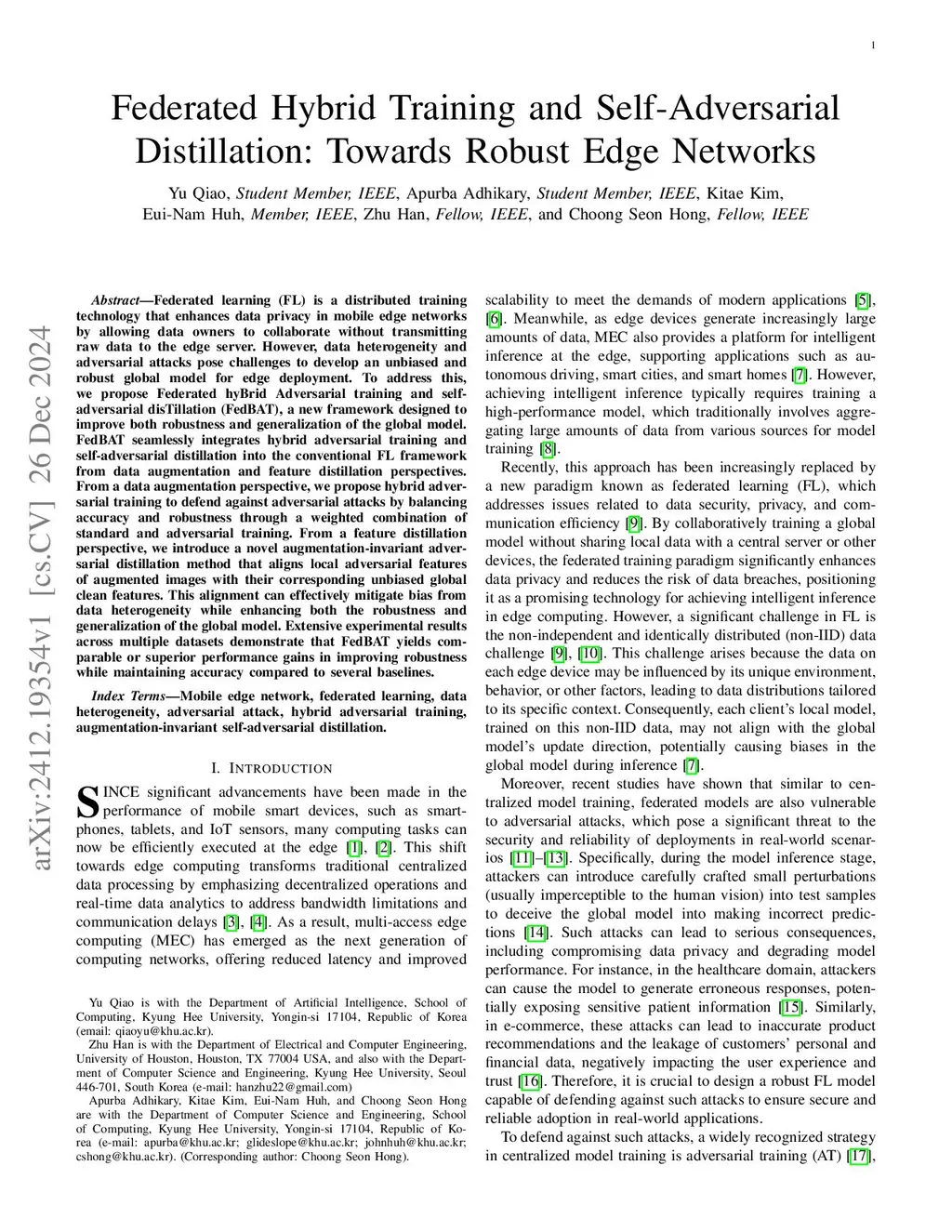 Federated Hybrid Training and Self-Adversarial Distillation: Towards