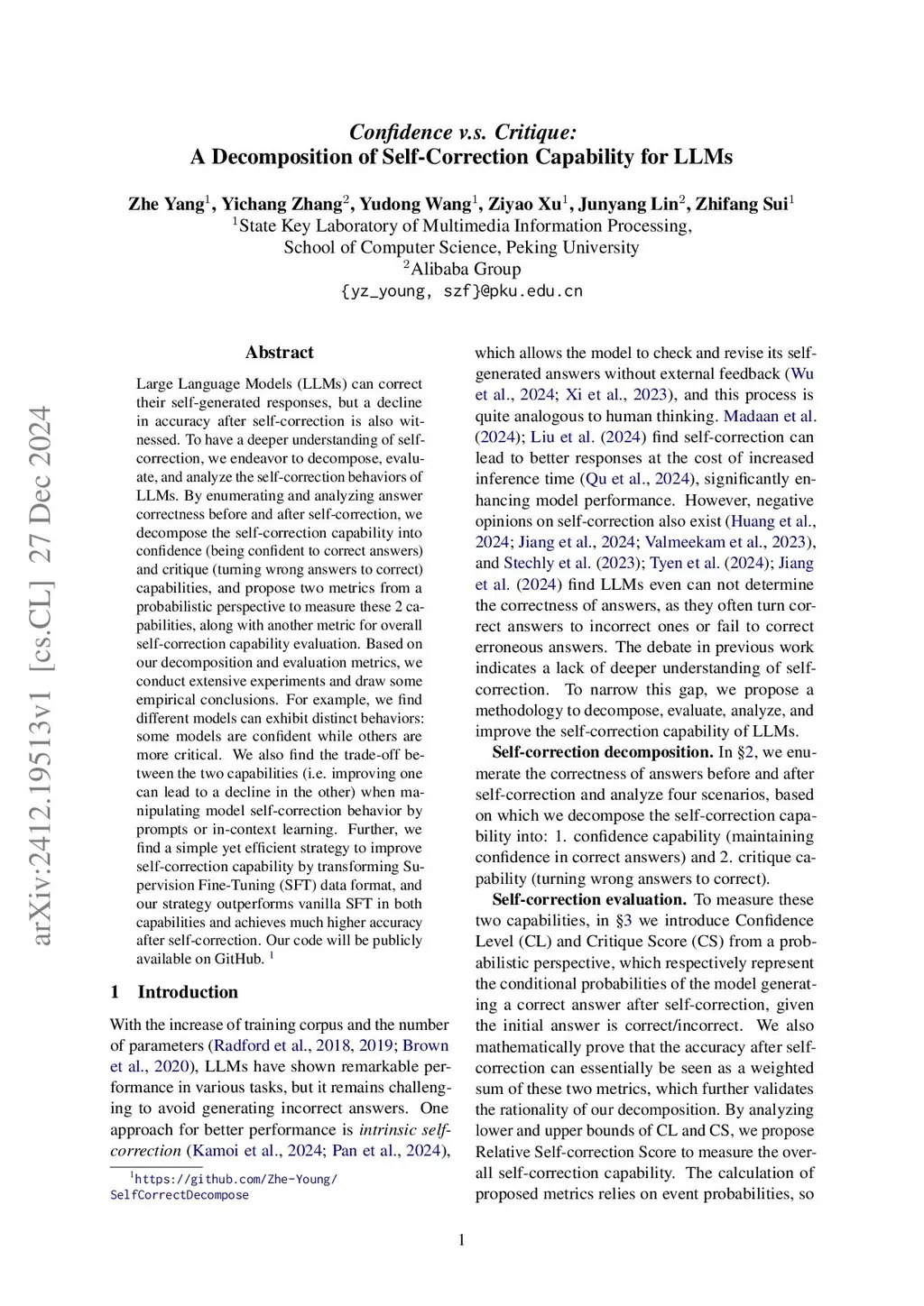 Confidence v.s. Critique: A Decomposition of Self-Correction Capability