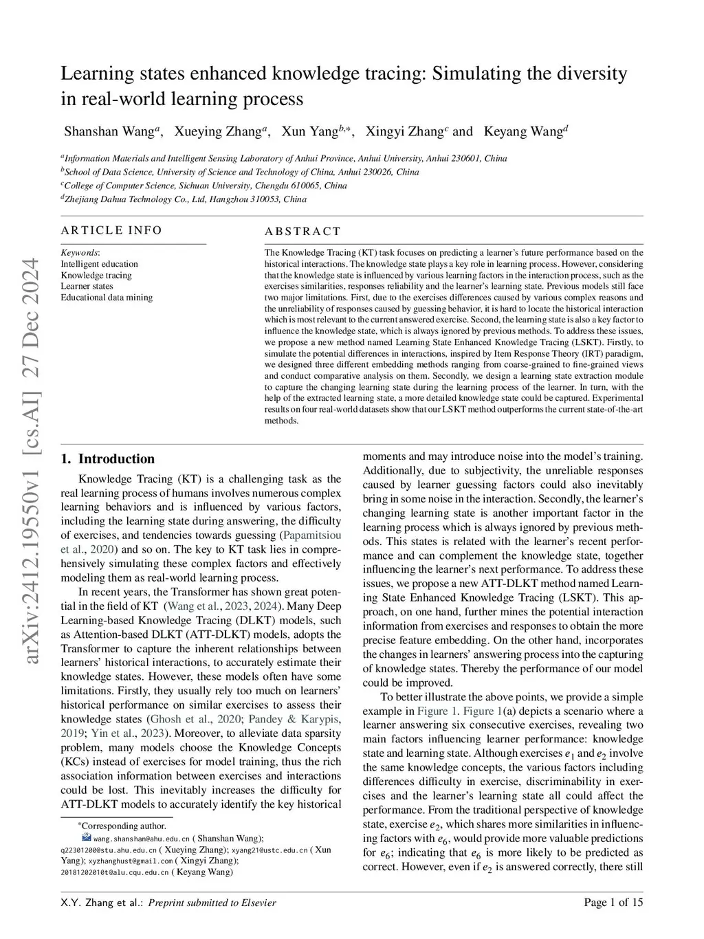 Learning states enhanced knowledge tracing: Simulating the diversity in