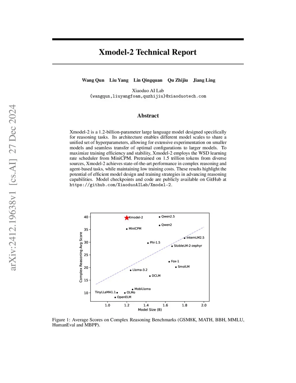 Xmodel-2 is a 1.2-billion-parameter large language model designed specifically for reasoning tasks. Its architecture enables different model scales to share a unified set of hyperparameters, allowing for extensive experimentation on smaller models and seamless transfer of optimal configurations to larger models. To maximize training efficiency and stability, Xmodel-2 employs the WSD learning rate scheduler from MiniCPM. Pretrained on 1.5 trillion tokens from diverse sources, Xmodel-2 achieves state-of-the-art performance in complex reasoning and agent-based tasks, while maintaining low training costs. These results highlight the potential of efficient model design and training strategies in advancing reasoning capabilities. Model checkpoints and code are publicly available on GitHub at https://github.com/XiaoduoAILab/Xmodel-2