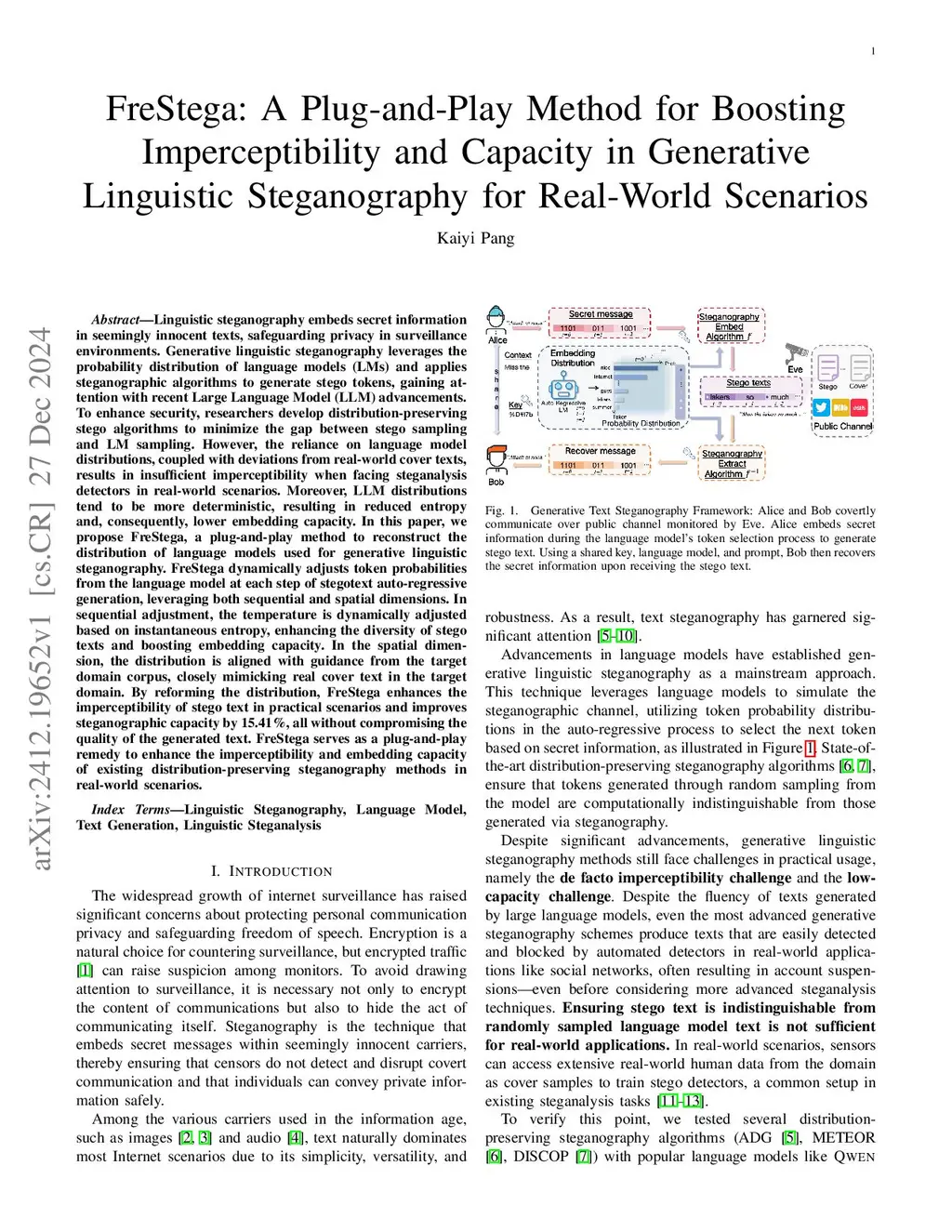 Linguistic steganography embeds secret information into seemingly innocuous text to safeguard privacy under surveillance. Generative linguistic steganography leverages the probability distributions of language models (LMs) and applies steganographic algorithms during generation, and has attracted increasing attention with the rise of large language models (LLMs). To strengthen security, prior work has focused on distribution-preserving steganographic algorithms that minimize the gap between stego sampling and random sampling from the model. However, their reliance on model distributions, which often deviate from real-world cover texts, leads to limited imperceptibility when facing steganalysis detectors in practical settings. Moreover, LLM distributions tend to be more deterministic, reducing entropy and thus lowering embedding capacity. In this paper, we propose a plug-and-play method that reconstructs the distributions of language models used for generative linguistic steganography. FreStega dynamically adjusts token probabilities from the language model at each step of autoregressive stego text generation, leveraging both sequential and spatial dimensions. Extensive experiments on four LLMs, three benchmark datasets, and four distribution-preserving steganographic baselines demonstrate that, by reforming the distribution, FreStega improves the imperceptibility of stego text in realistic scenarios and increases steganographic capacity by 15.41\%, without degrading the quality of the generated stegotext.