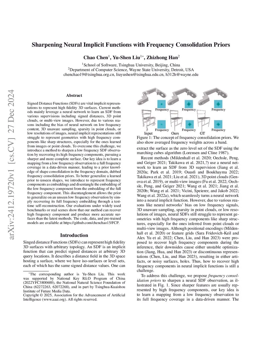 Sharpening Neural Implicit Functions with Frequency Consolidation Priors
