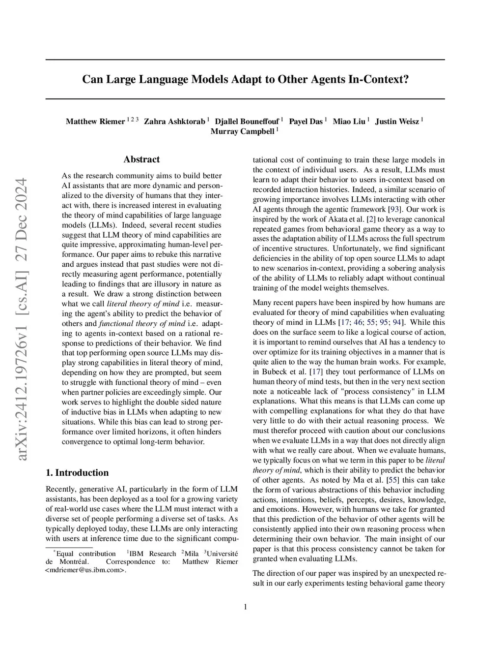 Our paper argues that the majority of theory of mind benchmarks are broken because of their inability to directly test how large language models (LLMs) adapt to new partners. This problem stems from the fact that theory of mind benchmarks for LLMs are overwhelmingly inspired by the methods used to test theory of mind in humans and fall victim to a fallacy of attributing human-like qualities to AI agents. We expect that humans will engage in a consistent reasoning process across various questions about a situation, but this is known to not be the case for current LLMs. Most theory of mind benchmarks only measure what we call literal theory of mind: the ability to predict the behavior of others. However, this type of metric is only informative when agents exhibit self-consistent reasoning. Thus, we introduce the concept of functional theory of mind: the ability to adapt to agents in-context following a rational response to their behavior. We find that many open source LLMs are capable of displaying strong literal theory of mind capabilities, but seem to struggle with functional theory of mind -- even with exceedingly simple partner policies. Simply put, strong literal theory of mind performance does not necessarily imply strong functional theory of mind performance or vice versa. Achieving functional theory of mind, particularly over long interaction horizons with a partner, is a significant challenge deserving a prominent role in any meaningful LLM theory of mind evaluation.