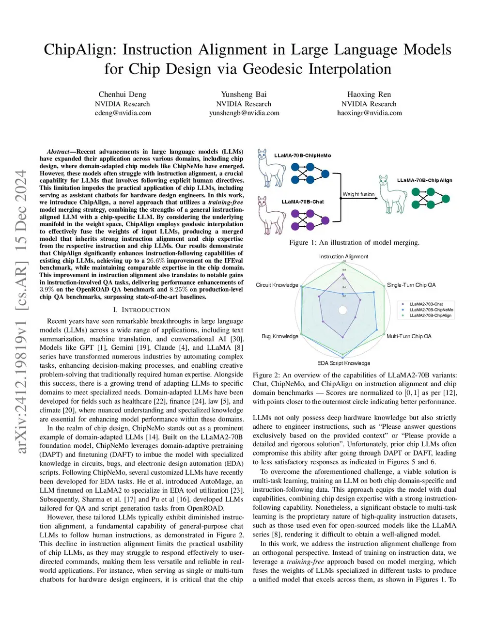 ChipAlign: Instruction Alignment in Large Language Models for Chip Design via Geodesic Interpolation
