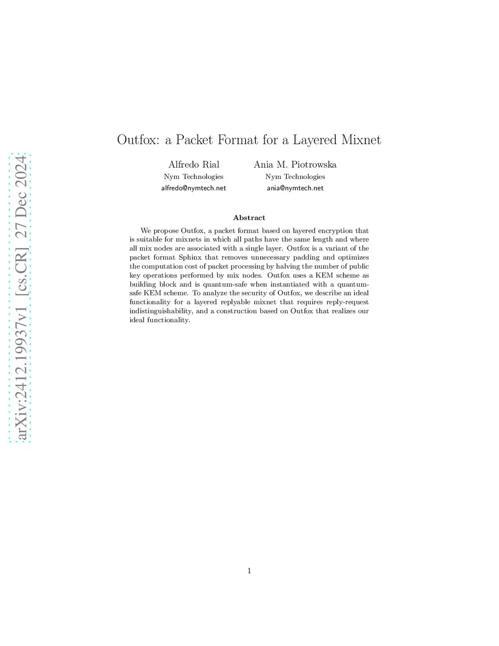 Outfox: a Packet Format for a Layered Mixnet