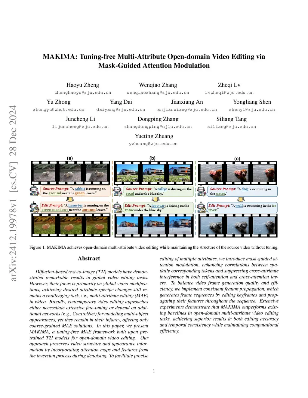 MAKIMA: Tuning-free Multi-Attribute Open-domain Video Editing via Mask-Guided Attention Modulation