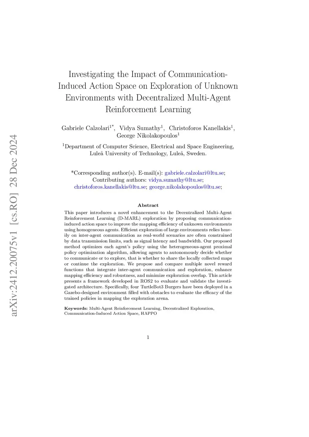 Investigating the Impact of Communication-Induced Action Space on Exploration of Unknown Environments with Decentralized Multi-Agent Reinforcement Learning