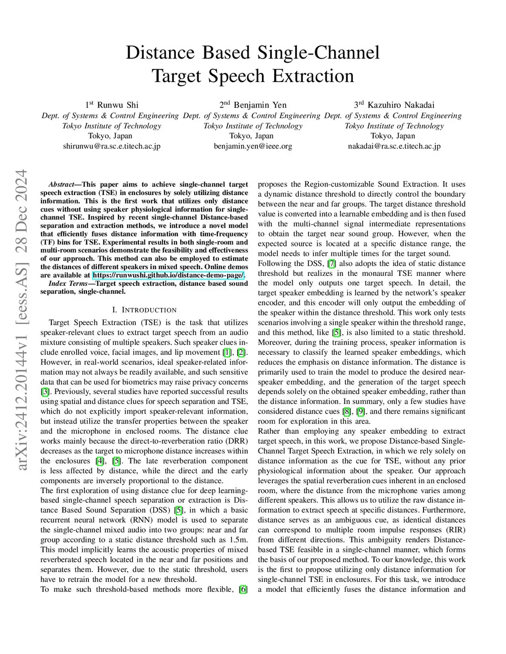 Distance Based Single-Channel Target Speech Extraction