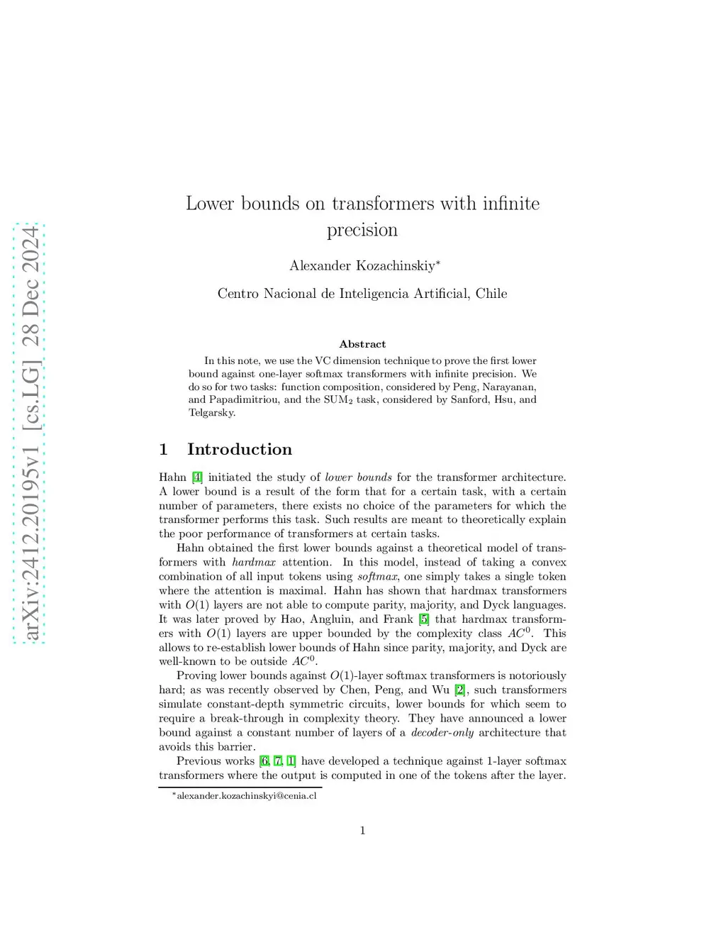 In this note, we use the VC dimension technique to prove the first lower bound against one-layer softmax transformers with infinite precision. We do so for two tasks: function composition, considered by Peng, Narayanan, and Papadimitriou, and the SUM task, considered by Sanford, Hsu, and Telgarsky.