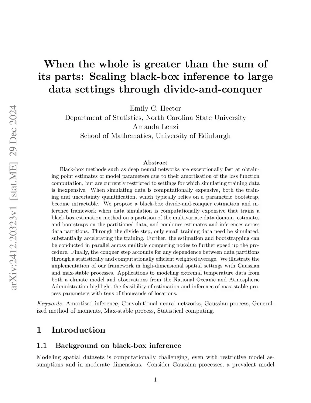 When the whole is greater than the sum of its parts: Scaling black-box inference to large data settings through divide-and-conquer