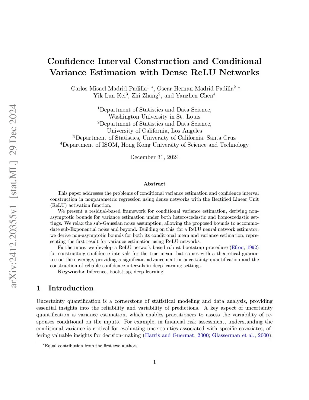 This paper addresses the problems of conditional variance estimation and confidence interval construction in nonparametric regression using dense networks with the Rectified Linear Unit (ReLU) activation function. We present a residual-based framework for conditional variance estimation, deriving nonasymptotic bounds for variance estimation under both heteroscedastic and homoscedastic settings. We relax the sub-Gaussian noise assumption, allowing the proposed bounds to accommodate sub-Exponential noise and beyond. Building on this, for a ReLU neural network estimator, we derive non-asymptotic bounds for both its conditional mean and variance estimation, representing the first result for variance estimation using ReLU networks. Furthermore, we develop a ReLU network based robust bootstrap procedure (Efron, 1992) for constructing confidence intervals for the true mean that comes with a theoretical guarantee on the coverage, providing a significant advancement in uncertainty quantification and the construction of reliable confidence intervals in deep learning settings.