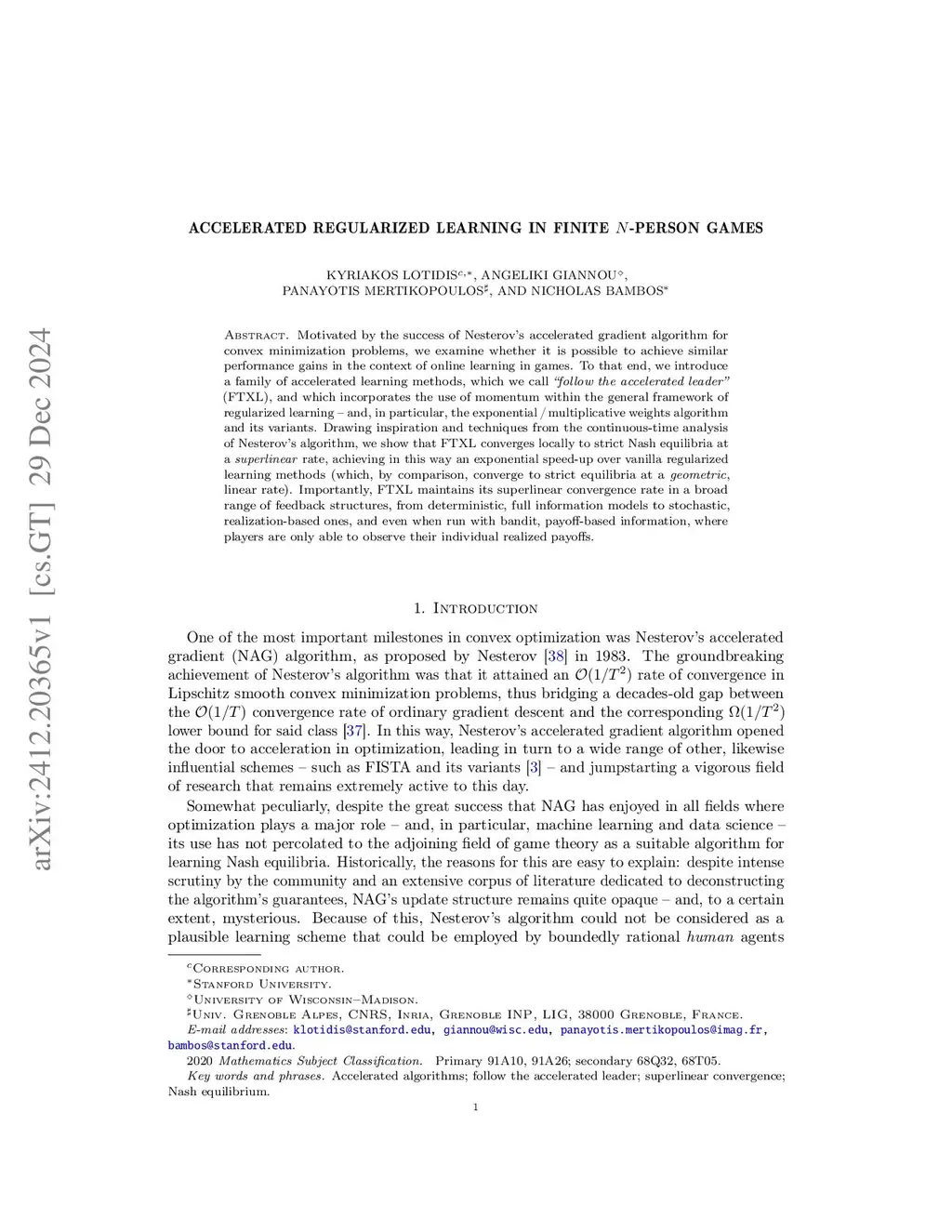 Motivated by the success of Nesterov's accelerated gradient algorithm for convex minimization problems, we examine whether it is possible to achieve similar performance gains in the context of online learning in games. To that end, we introduce a family of accelerated learning methods, which we call "follow the accelerated leader" (FTXL), and which incorporates the use of momentum within the general framework of regularized learning - and, in particular, the exponential/multiplicative weights algorithm and its variants. Drawing inspiration and techniques from the continuous-time analysis of Nesterov's algorithm, we show that FTXL converges locally to strict Nash equilibria at a superlinear rate, achieving in this way an exponential speed-up over vanilla regularized learning methods (which, by comparison, converge to strict equilibria at a geometric, linear rate). Importantly, FTXL maintains its superlinear convergence rate in a broad range of feedback structures, from deterministic, full information models to stochastic, realization-based ones, and even when run with bandit, payoff-based information, where players are only able to observe their individual realized payoffs.
