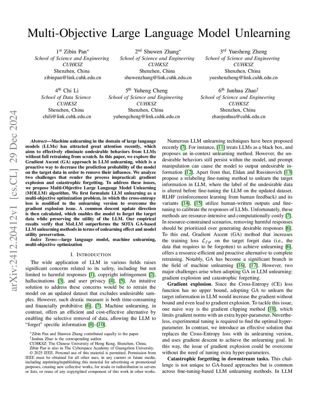 Multi-Objective Large Language Model Unlearning