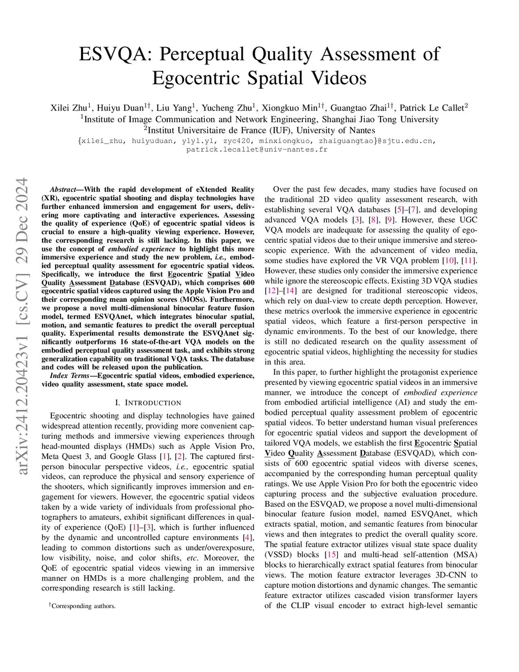 ESVQA: Perceptual Quality Assessment of Egocentric Spatial Videos