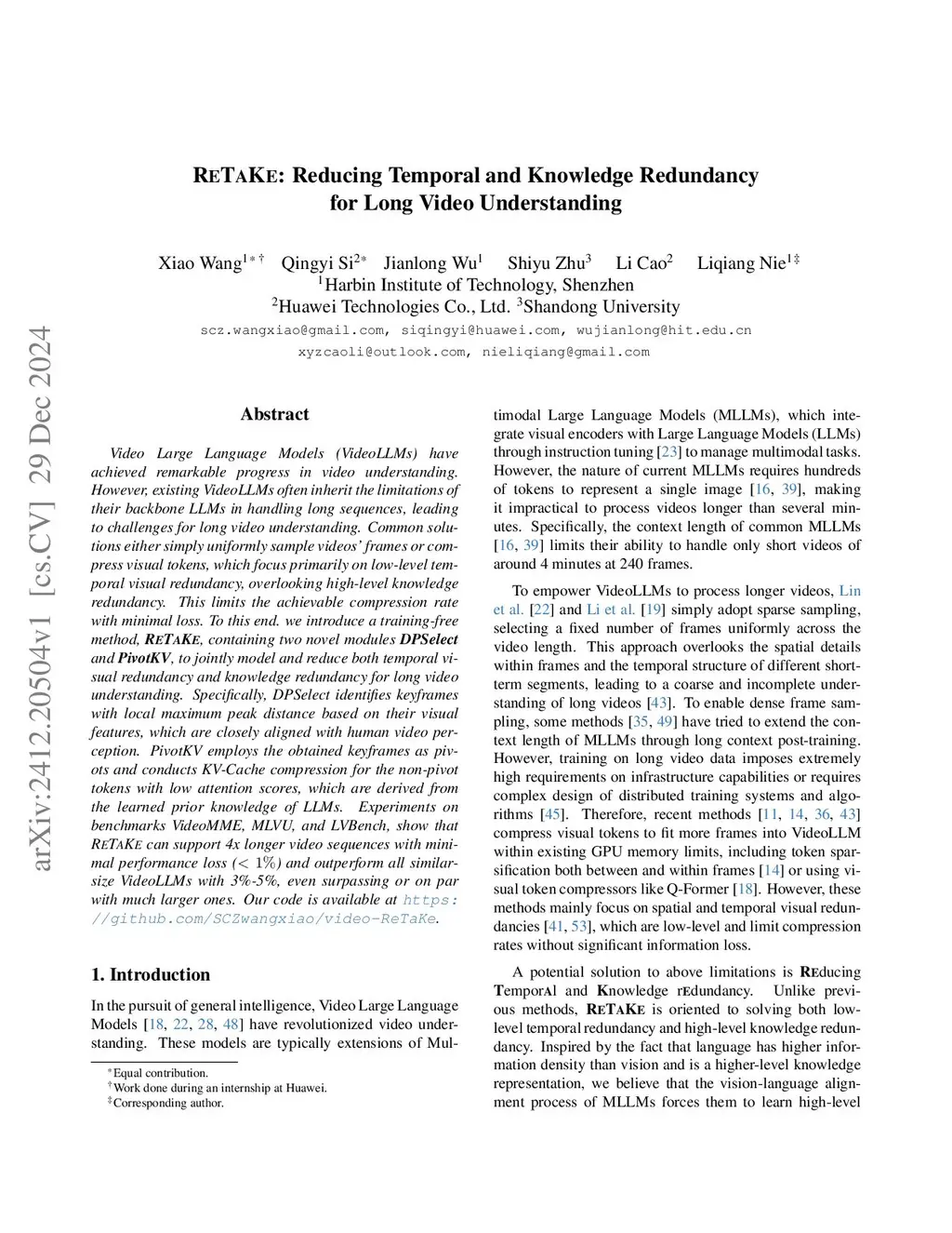 ReTaKe: Reducing Temporal and Knowledge Redundancy for Long Video Understanding