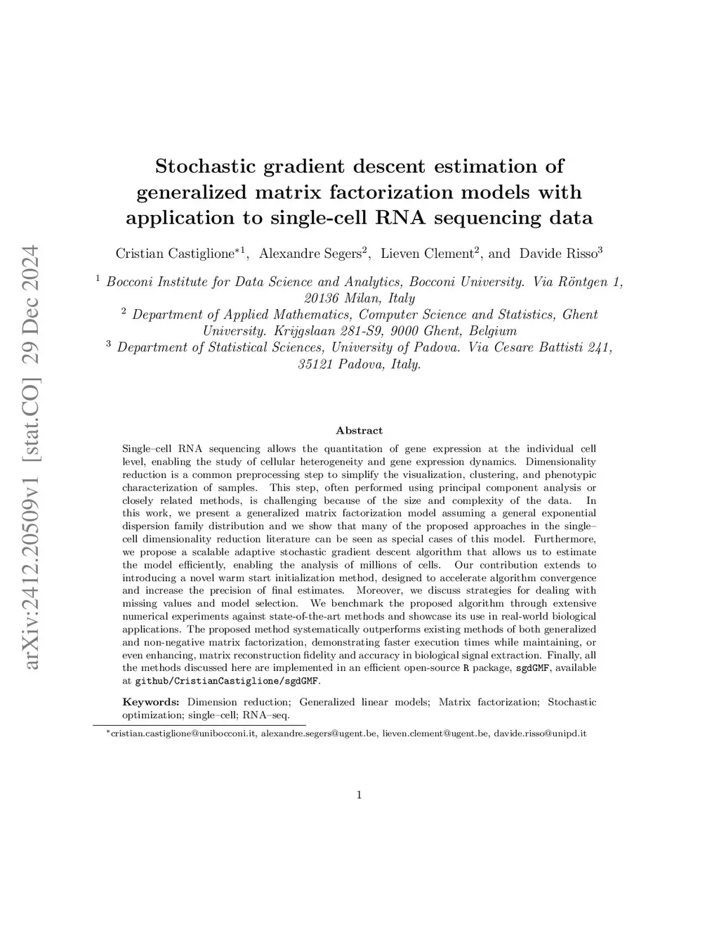 Stochastic gradient descent estimation of generalized matrix factorization models with application to single-cell RNA sequencing data