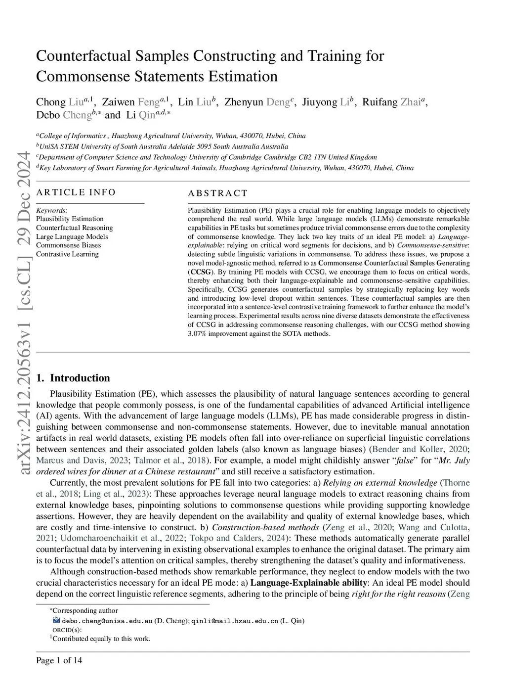 Counterfactual Samples Constructing and Training for Commonsense Statements Estimation